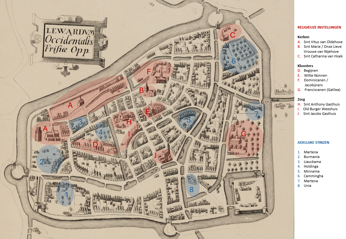 In de 16e eeuw was ca. 35% van de stad niet of schaars bebouwd. Een groot deel van de 65% aan bebouwd terrein werd in beslag genomen door geestelijken en door adellijke families. Pas na De Opstand in 1580 kwam er meer ruimte voor stedelijke functies, zoals woningen voor burgers en gebouwen voor handel, nijverheid en gildes.